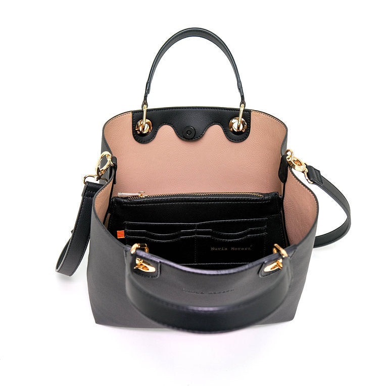 El bolso Fortiá es la opción perfecta para quienes buscan estilo y practicidad. Con su asa larga ajustable, te ofrece la comodidad de llevarlo tanto al hombro como de manera cruzada. Su interior cuenta con una cosmetiquera fija con cierre, ideal para organizar tus esenciales, además de un práctico espacio para 4 tarjetas, manteniendo todo a la mano. El cierre magnético te permite acceder fácilmente a tus pertenencias, mientras que los resbalones en la parte inferior añaden durabilidad, protegiendo la base del bolso del desgaste diario.